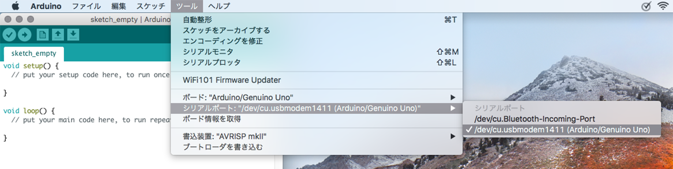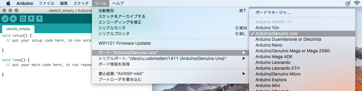 プログラムを書き込むとき,ボードとシリアルポートが正しく選択されているか注意!